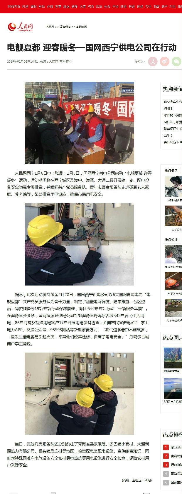人民网:电靓夏都 迎春暖冬——国网西宁供电公司在行动